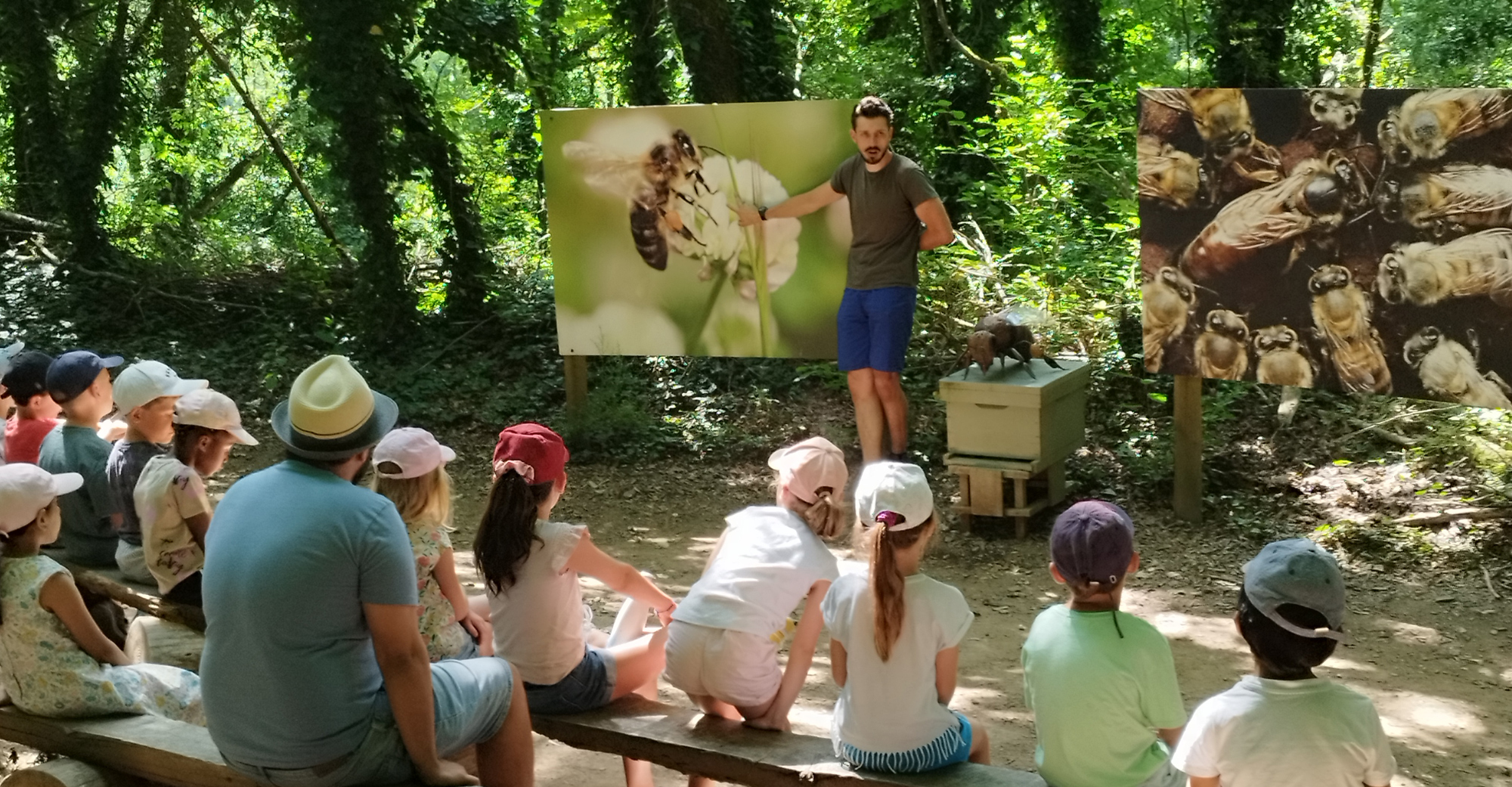 Les enfants découvrent le mode de vie des abeilles, leur rôle dans la nature et les dangers qui pèsent sur elles. Ils comprennent la vie des abeilles et identifient les habitants de la ruche. Avec l’apiculteur, ils assistent à l’ouverture de la ruche et goûtent le miel. Ils découvrent le rôle très important des abeilles dans notre environnement et ils trouvent des solutions pour les sauver.